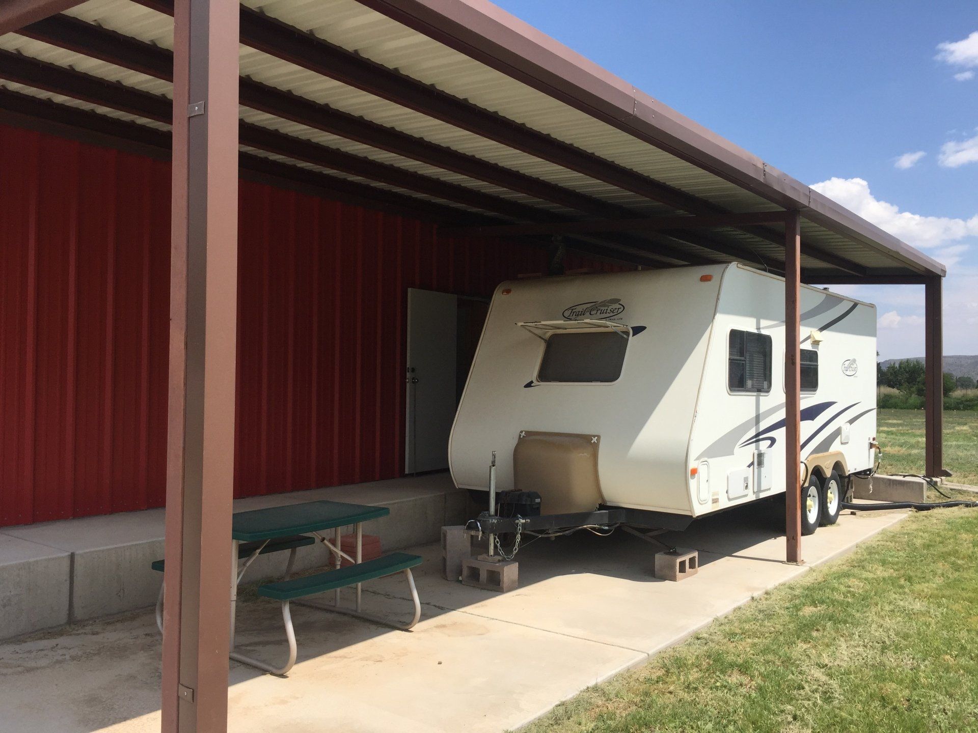 - 20'x40' Mueller Barn with cement foundation and full bathroom facilities (comode & sink / shower completely insulated). Electricity, large overhead roll up door and shelves. One side has a carport extension perfect for the RV camper that goes with the property.