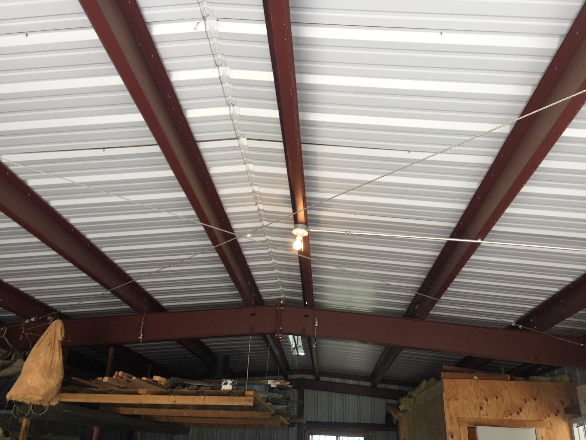 - 40'x40' Mueller Barn, insulated with 24' carport extensions on both ends and concrete foundations. Electricity, heavy duty roll up doors, and some metal storage shelves