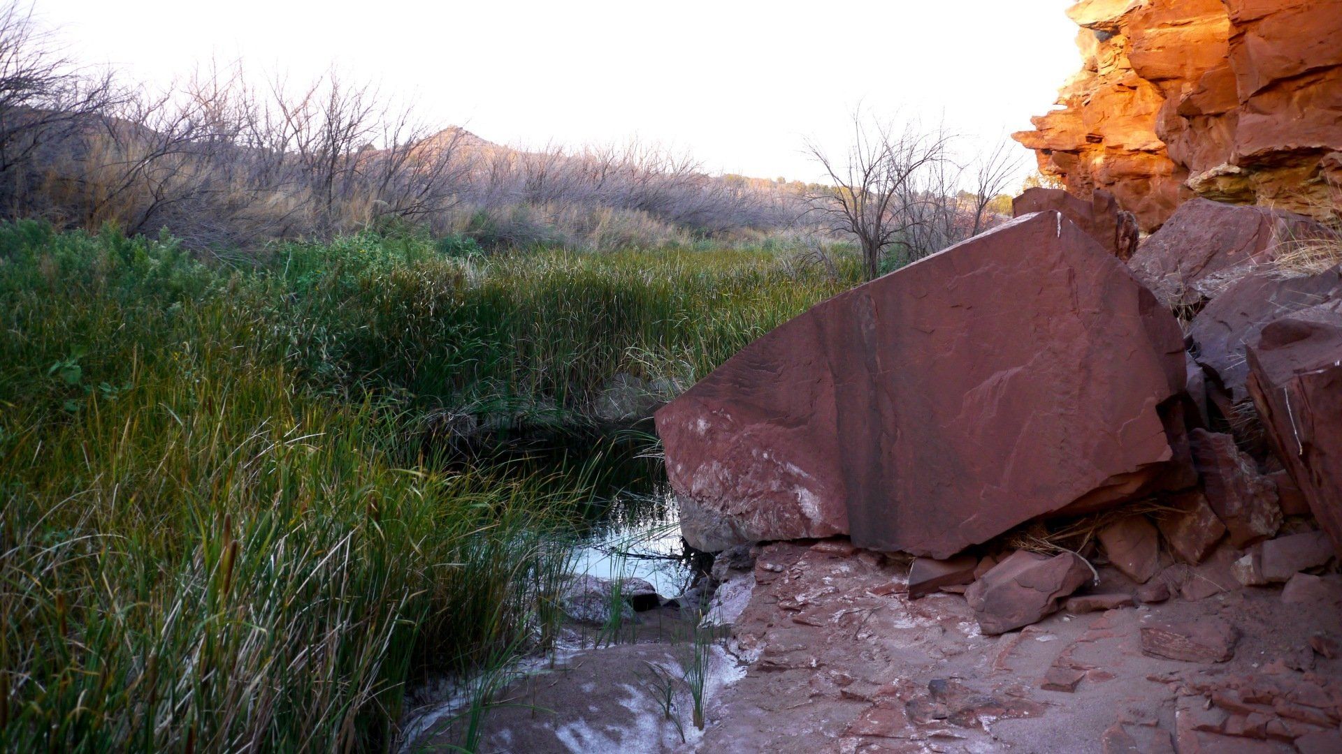 It sits near the end of a dead end road so there will be minimal traffic, peace and quiet. Among the many facets of this property are majestic red rock, live spring at certain times of the year, various elevation changes and a homesite.